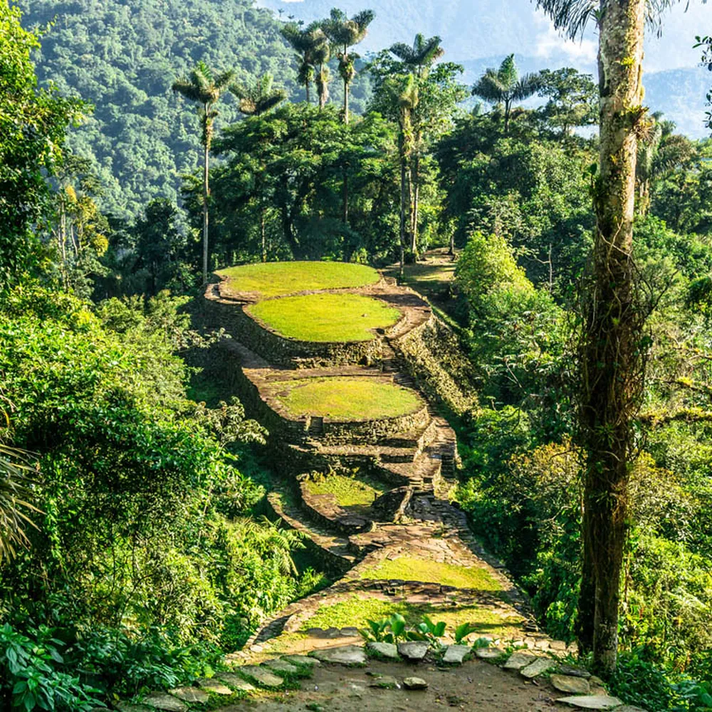 Tras Cartagena, nos adentraremos en la Sierra Nevada de Santa Marta hasta llegar a Ciudad Perdida o Teyuna, la antigua ciudad construida por los indígenas tayronas en el 700 d.C. El camino a ratos se vuelve empinado, y el sudor hace presencia fruto de la humedad, pero podremos refrescarnos en las piscina naturales del recorrido. A partir del segundo día ya no hay atisbo de civilización, tan solo los inmensos árboles, el verde intenso, los riachuelos, las mariposas y el canto de las aves serán nuestros compañeros de viaje. Repondremos fuerzas con fruta fresca, descubriremos algún poblado Kogui. El sendero se hará más pronunciado en la laderas que ha excavado el río Buritaca, así como los últimos mil doscientos escalones recubiertos de musgo hasta que llegamos a uno de los lugares más emblemáticos de Sudamérica, Ciudad Perdida.