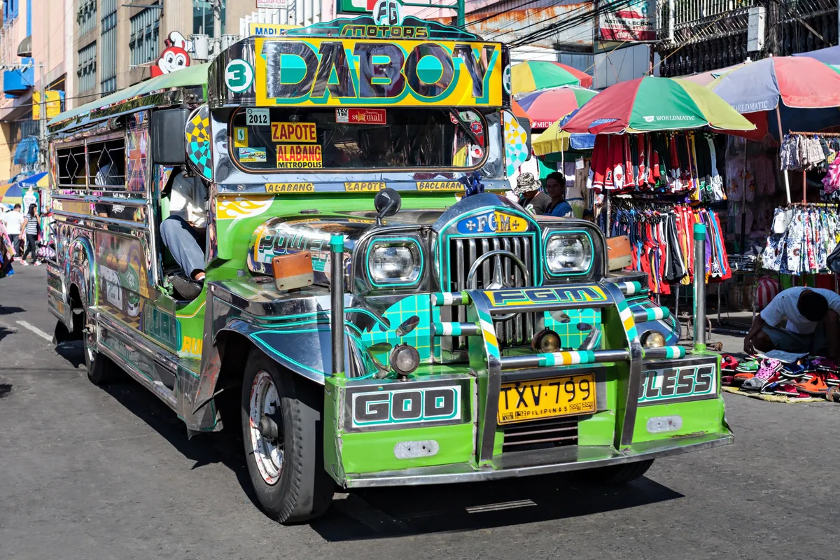 Uso de transporte variado: jeepneys, barcos, ferris, buses y vuelos domésticos.