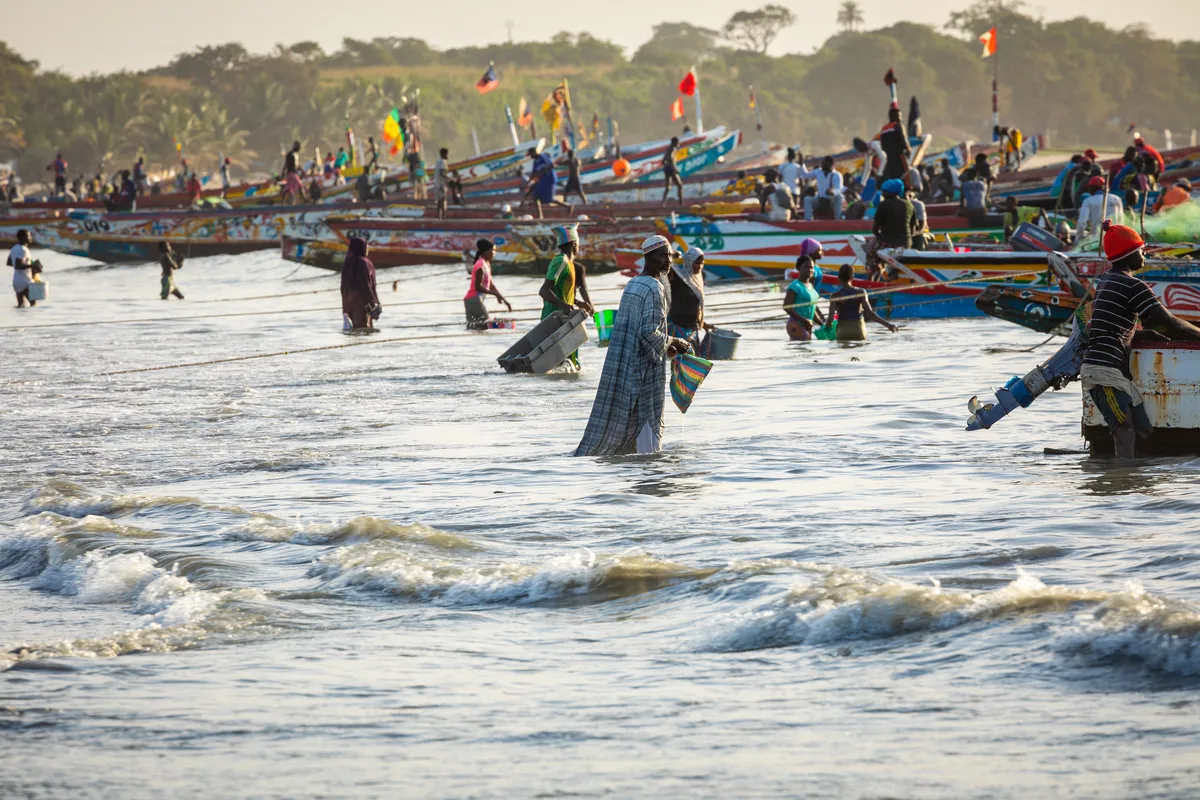 Tras conocer los alrededores de esta zona, cruzamos la frontera rumbo a Senegal, donde podremos tratar de ver delfines y pelícanos en los alrededores de Zinguichor, así como su interesante mercado de pescado, donde descargan y comercializan todo tipo de peces tanto de mar como de río.