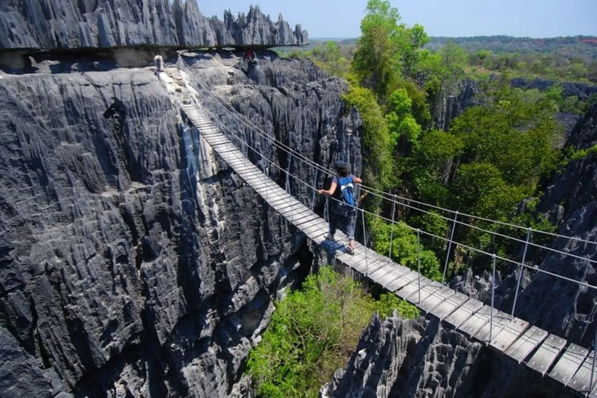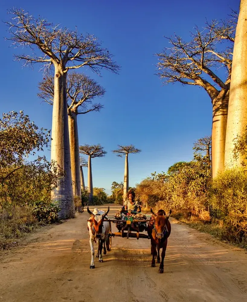 Seguimos fuerte, con los Tsingys de Bemaraha, un laberinto de agujas de piedra afiladas donde caminar es un pequeño desafío y una gran aventura. Luego bajamos el ritmo con la Avenida de los Baobabs, uno de esos lugares que parece que te metiste en un salvapantallas. Tranquilo, es real. Y es aún mejor al atardecer.