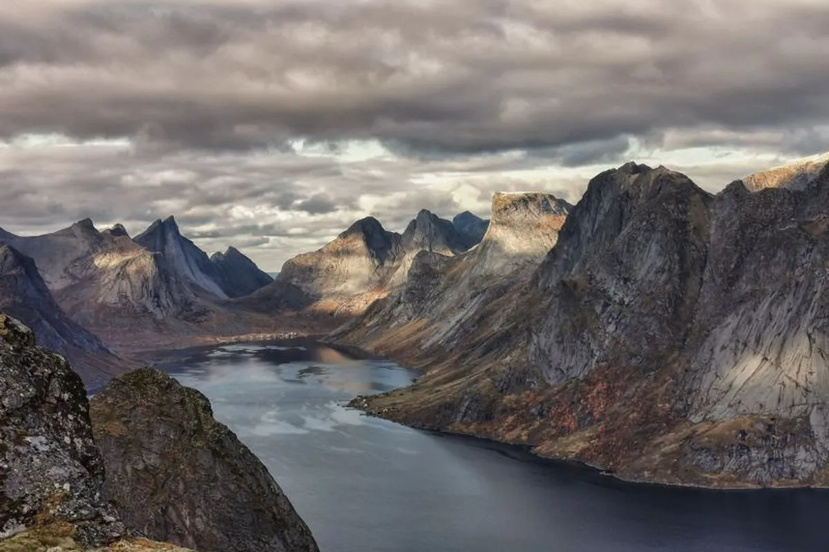 Carretera escénica con paradas constantes: fiordos, lagos, playas árticas.