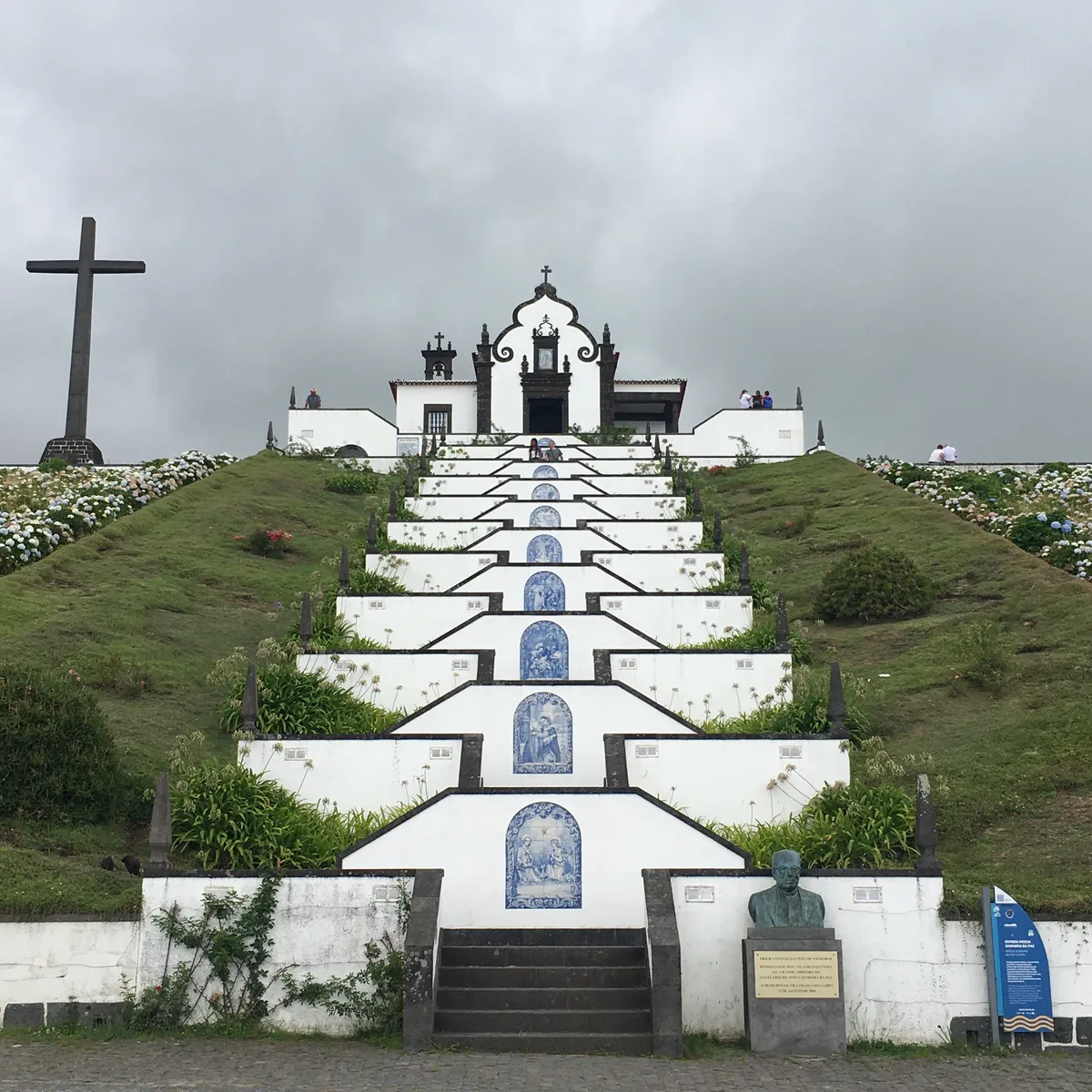 Hoy ha sido uno de los días más espectaculares del viaje. Amanecimos con algo de niebla, pero pronto el cielo se abrió y nos dirigimos hacia Sete Cidades. Caminamos entre helechos y hortensias en flor y poco a poco, el paisaje se fue abriendo hasta regalarnos la imagen más increíble del viaje: dos lagos dentro de un cráter inmenso, uno azul y otro verde, separados por un puente que parecía de cuento. Nos quedamos en silencio, absorbiendo cada detalle de este espectáculo de la naturaleza.